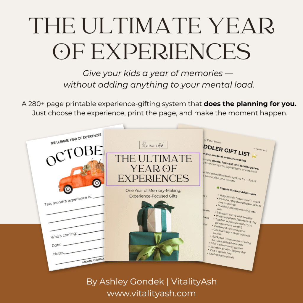 It’s designed to help you create meaningful moments with your kids, reduce the overwhelm of “too much stuff,” and focus on experiences — whether you choose monthly adventures or a few memorable yearly outings.